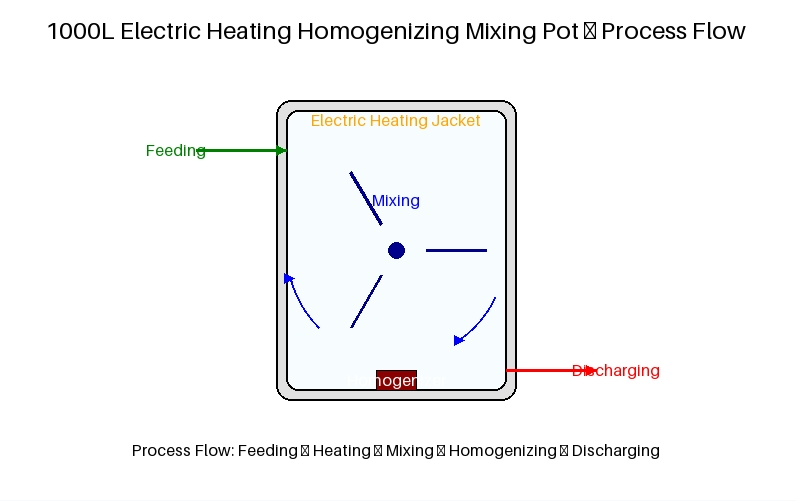 This 1000L electric heating homogenizing mixing tank is a multi-functional integrated equipment widely applied in cosmetics, pharmaceuticals, food, daily chemicals and light chemical industries. It combines electric heating, precise temperature control, high-shear homogenization and stirring functions, enabling even heating, sufficient mixing, efficient dispersion and stable emulsification of materials.