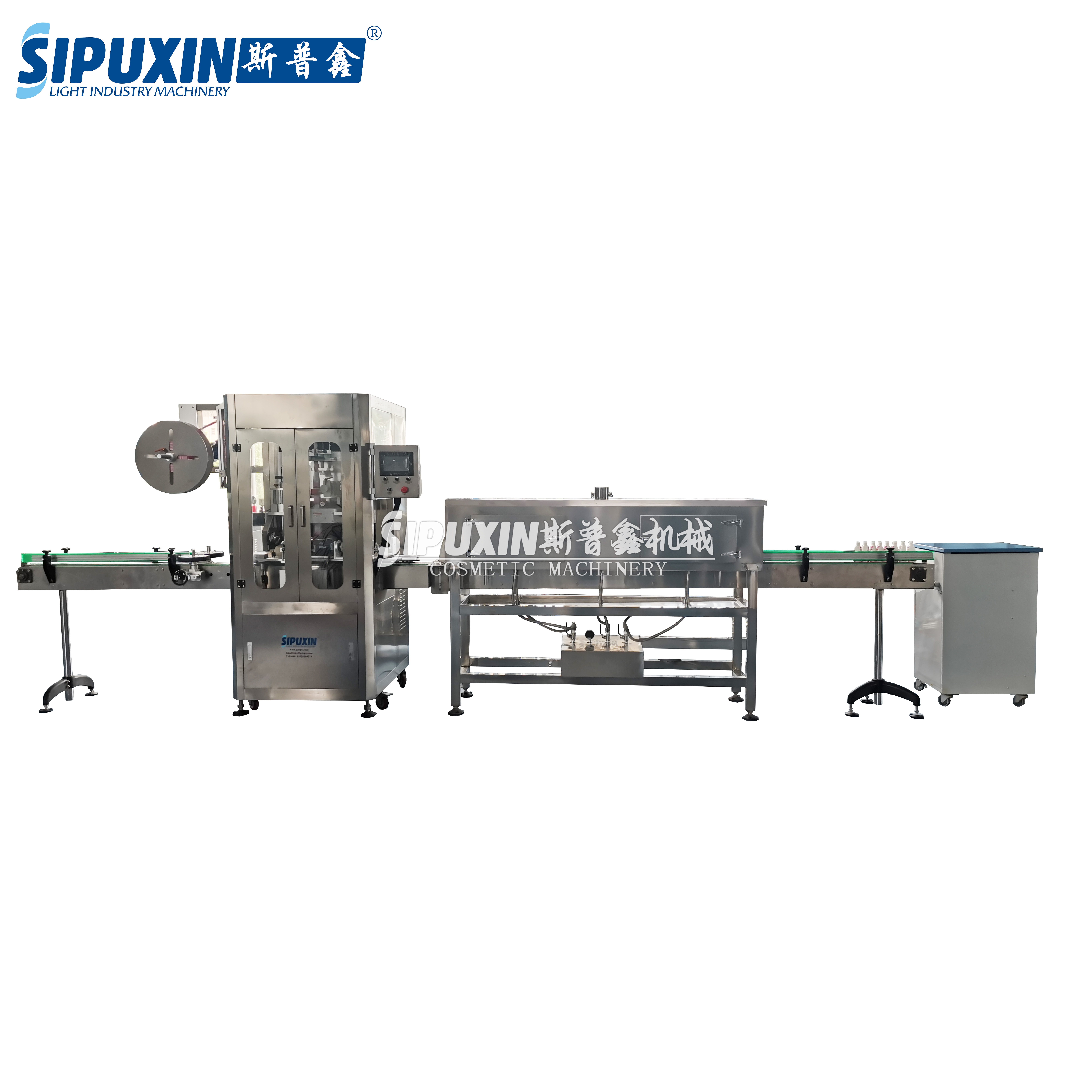 The automatic sleeve - labeling heat - shrink packaging machine /shrink sleeve - label printing machine is applicable to various bottle types such as cans, glass bottles, and bottles, for example: round bottles, square bottles, cup - shaped bottles, etc.
